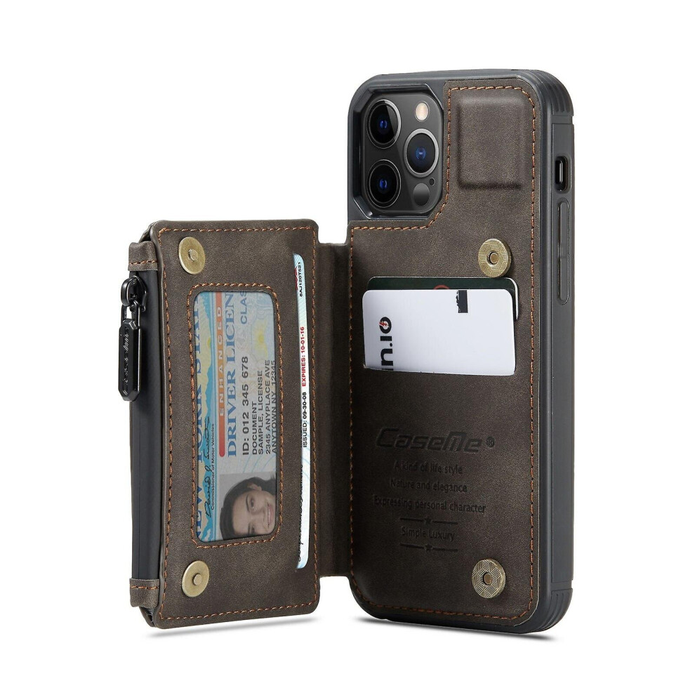 (Brown, For iPhone 13 ProMax) Multipurpose Leather Phone Case With Card Slots Zipper Wallet Back Cover For Iphone 13