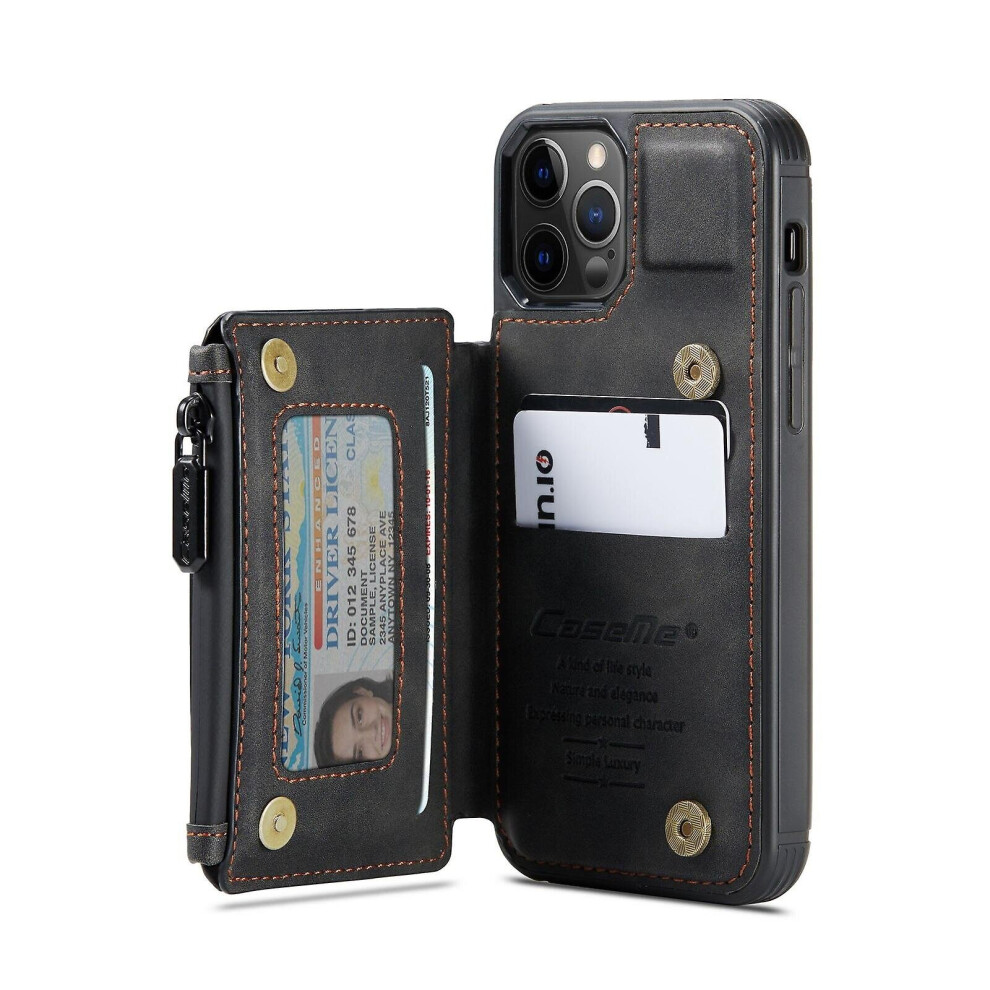 (Black, For iPhone 13 ProMax) Multipurpose Leather Phone Case With Card Slots Zipper Wallet Back Cover For Iphone 13