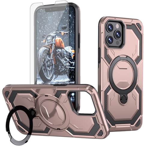 Asuwish Phone Case for iPhone 12 Pro Max/13 ProMax and Magnetic Ring Holder Kickstand with Screen Protector Cover Slim Cell Accessories iPhone12promax i 12pro Promax iPhone13promax Women Men Rose Gold