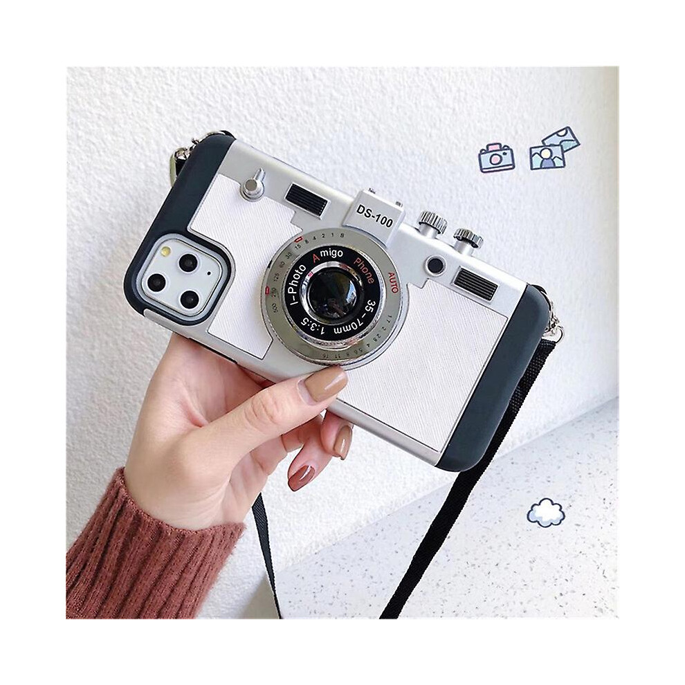 (White, For iPhone 13 ProMax) Luxury Lanyard Shockproof Back Cover 3d Retro Camera Emily In Paris Phone Case For Iphone 13 Pro Xs Max