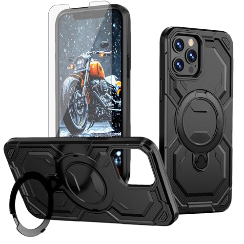 Asuwish Phone Case for iPhone 12 Pro Max/13 ProMax and Magnetic Ring Holder Kickstand with Screen Protector Cover Slim Cell Accessories iPhone12promax i 12pro Promax iPhone13promax Women Men Black