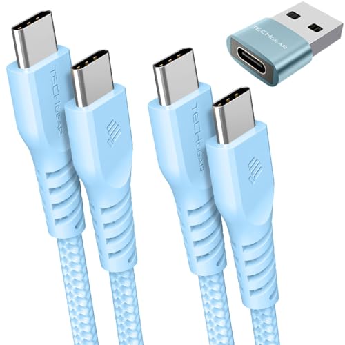 TECHGEAR USB C to USB C Charger Cable 60W (1M+2M+Adapter) Strong Braided Fast Charging Type C Data Lead for iPhone 17 16 15 Pro Max, iPad Air/Pro/A16/10th, Samsung S26 S25 S24 A54 A16, Pixel, Oppo etc