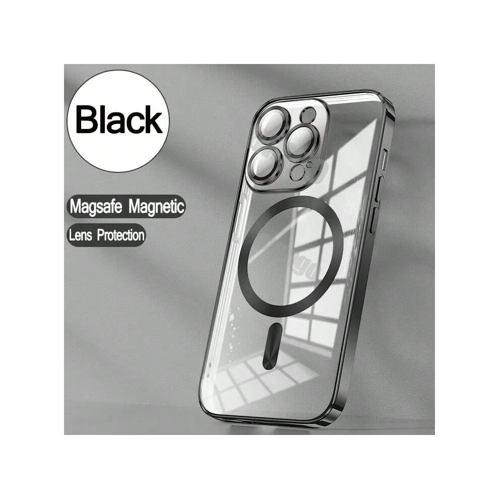 (black, iPhone 16) New Plating Clear Lens Protector Magsafe Phone Case For iPhone 17 Pro Max 16 15 14 13 12 Pro Max 17Pro 17Air Magnetic Soft Cover