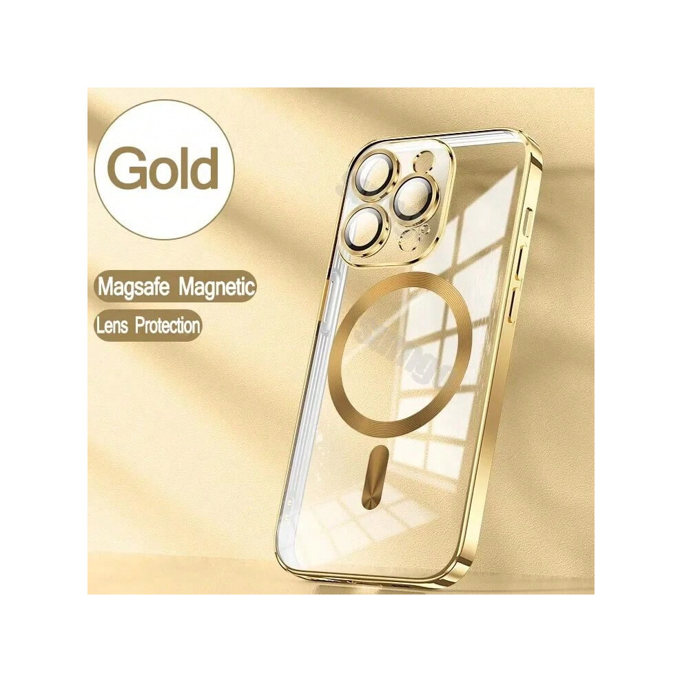(Gold, For iPhone 16) Official New Desert Gold Wireless Charging Magsafe Case iPhone 16 15 14 13 12 11 Pro Max Plus Magnetic Electroplate Bumper Cover