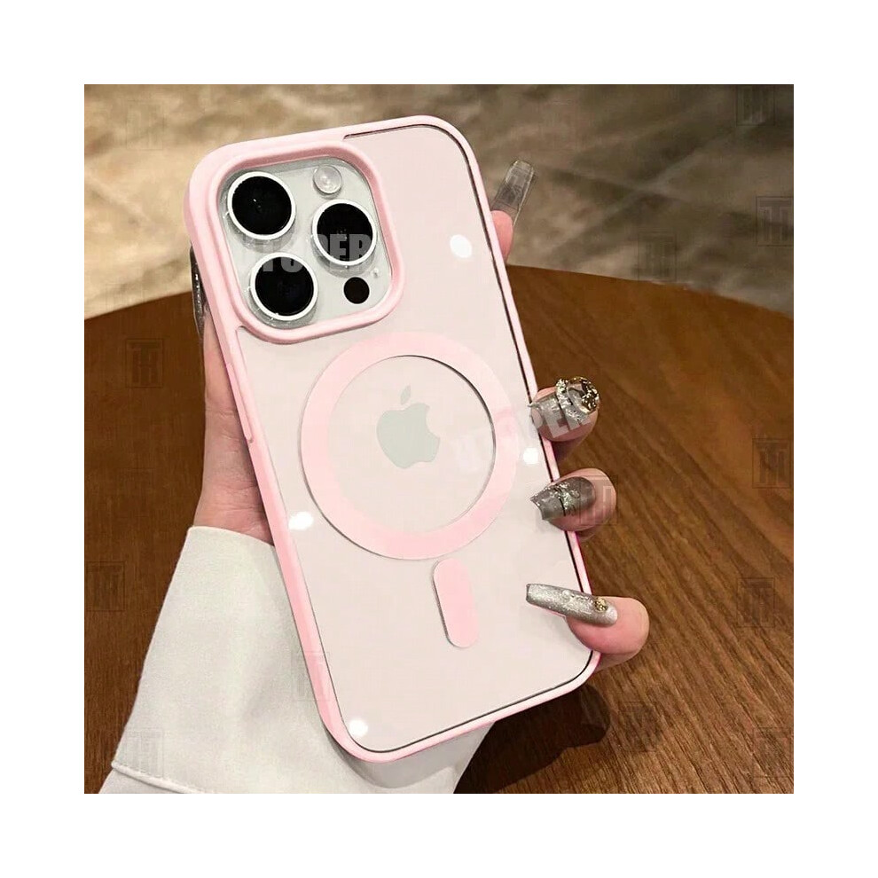 (Pink, For iPhone 16 Pro) New Pink Transparent Acrylic Case for iPhone 16 15 14 13 12 11 Pro Max 16 Plus Hard Shockproof Powerful Magnetic Magsafe Cov