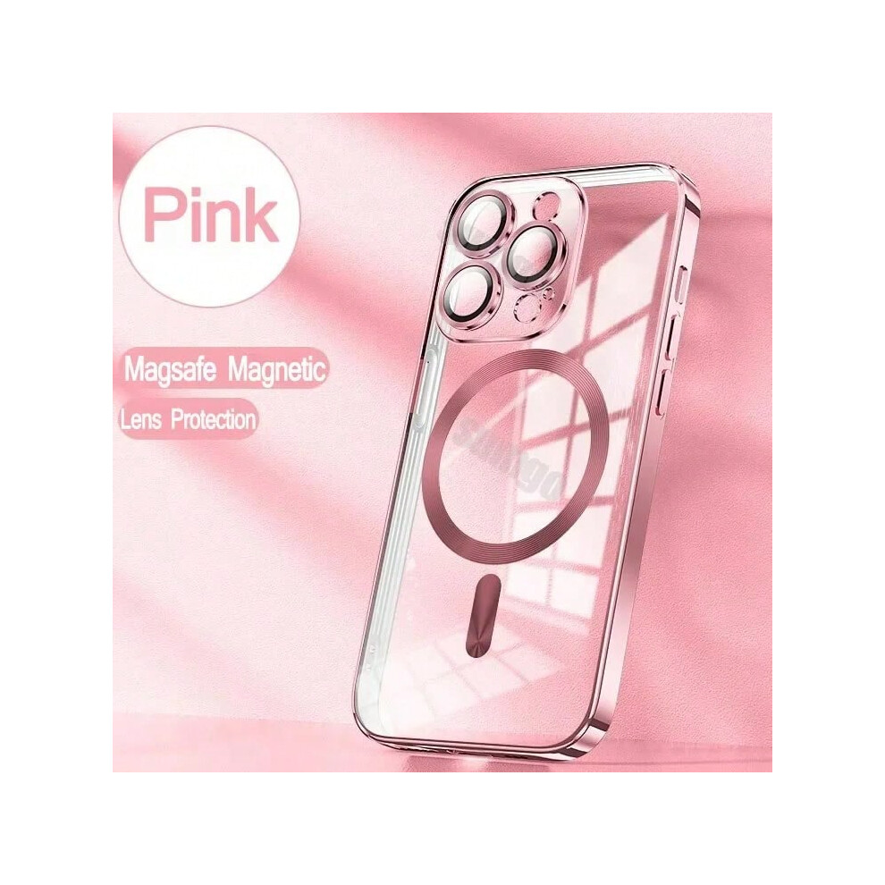 (Pink, For iPhone 16) Official New Desert Gold Wireless Charging Magsafe Case iPhone 16 15 14 13 12 11 Pro Max Plus Magnetic Electroplate Bumper Cover