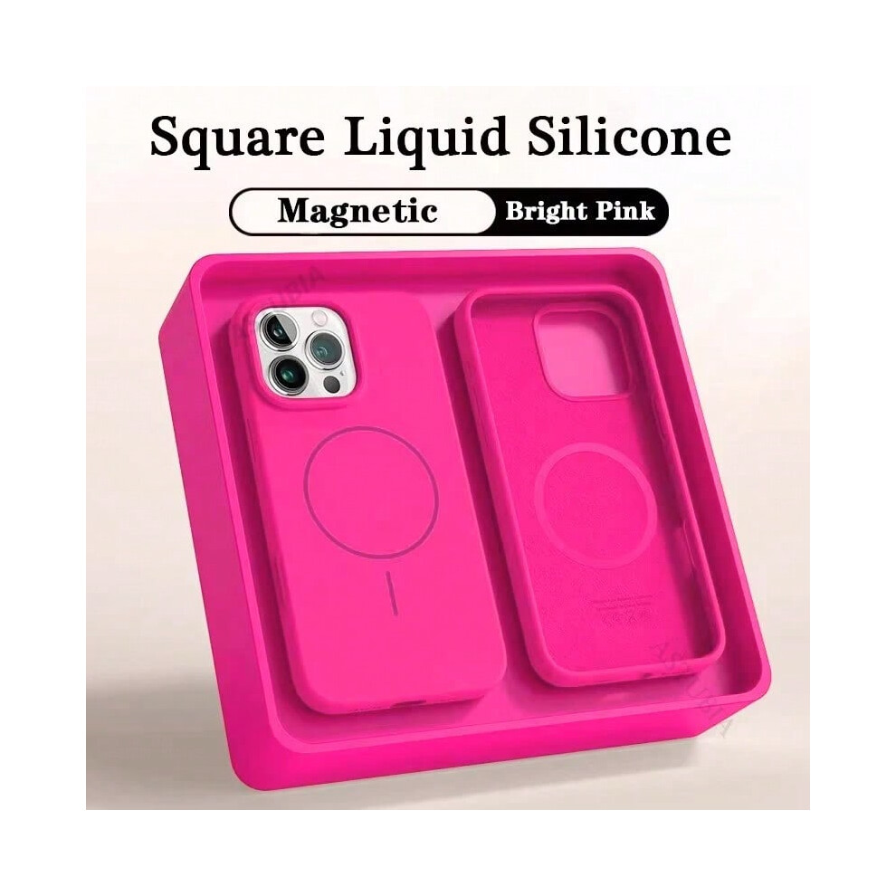(brigh pink, for iPhone 16) 2025 New Liquid Silicone Magnetic Case For iPhone 16 15 14 11 12 13 Pro Max Plus Wireless Charging Soft Cover