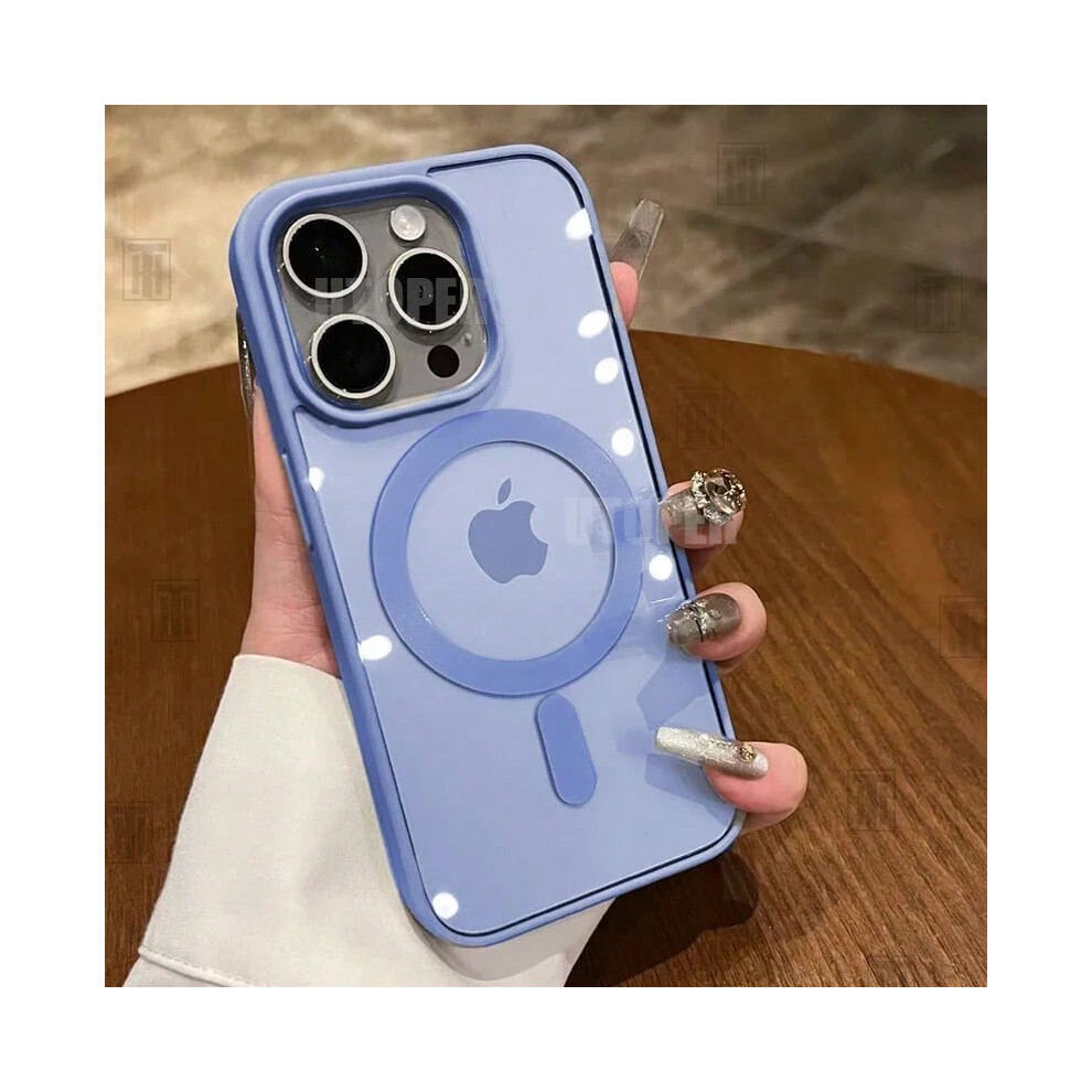 (Blue, For iPhone 16 Plus) New Pink Transparent Acrylic Case for iPhone 16 15 14 13 12 11 Pro Max 16 Plus Hard Shockproof Powerful Magnetic Magsafe Co