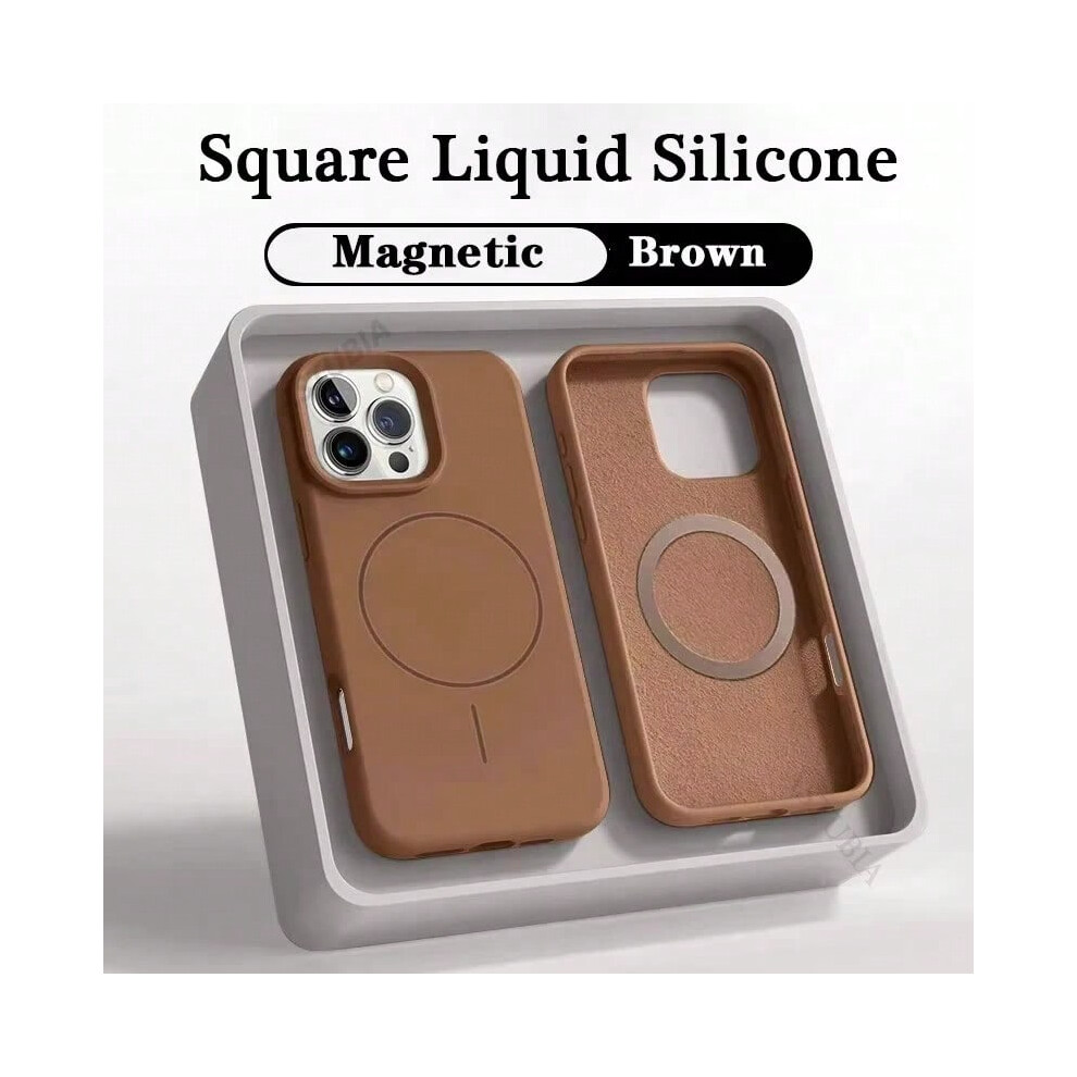 (brown, for iPhone 16) 2025 New Liquid Silicone Magnetic Case For iPhone 16 15 14 11 12 13 Pro Max Plus Wireless Charging Soft Cover