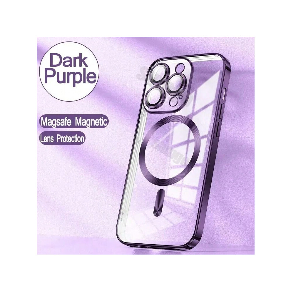 (Dark Purple, For iPhone 16) Official New Desert Gold Wireless Charging Magsafe Case iPhone 16 15 14 13 12 11 Pro Max Plus Magnetic Electroplate Bumpe