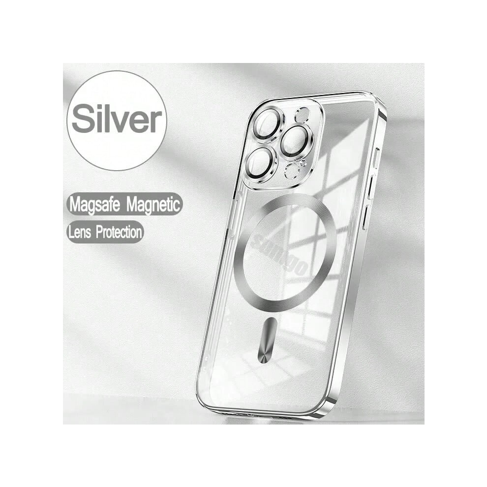 (Silver, iPhone 16) New Plating Clear Lens Protector Magsafe Phone Case For iPhone 17 Pro Max 16 15 14 13 12 Pro Max 17Pro 17Air Magnetic Soft Cover