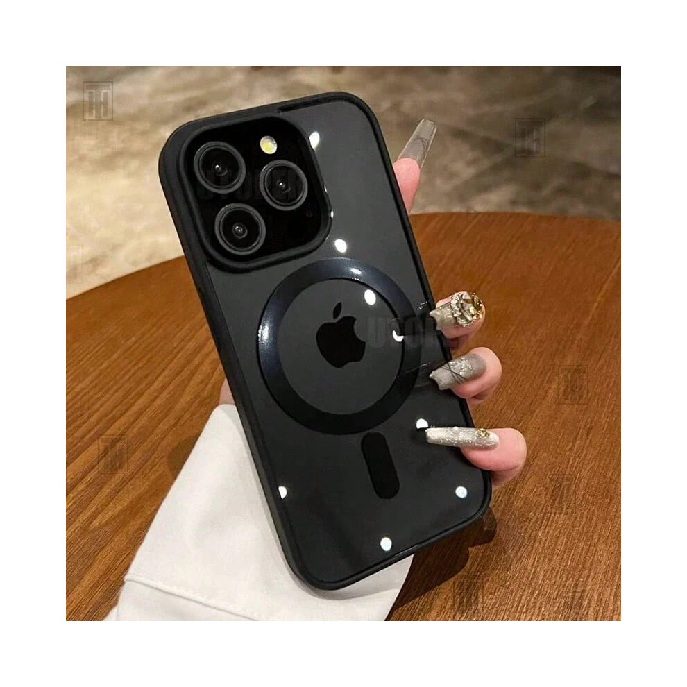 (Black, For iPhone 16) New Pink Transparent Acrylic Case for iPhone 16 15 14 13 12 11 Pro Max 16 Plus Hard Shockproof Powerful Magnetic Magsafe Cover
