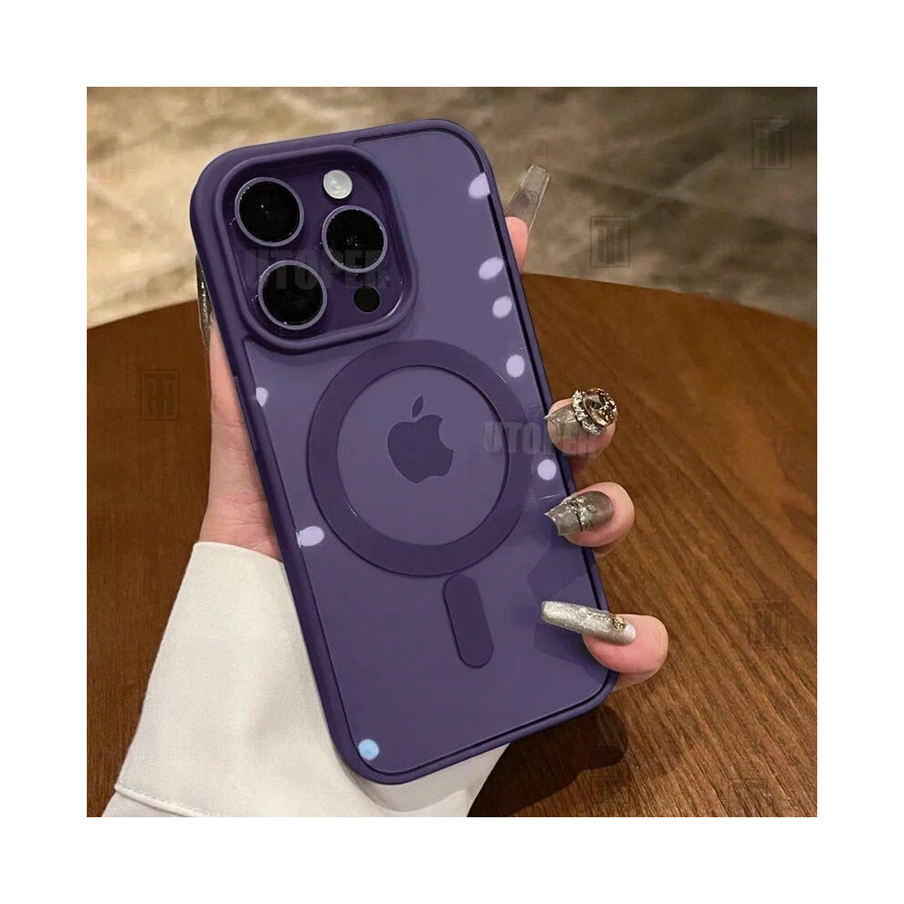 (Dark purple, For iPhone 16 Plus) New Pink Transparent Acrylic Case for iPhone 16 15 14 13 12 11 Pro Max 16 Plus Hard Shockproof Powerful Magnetic Mag