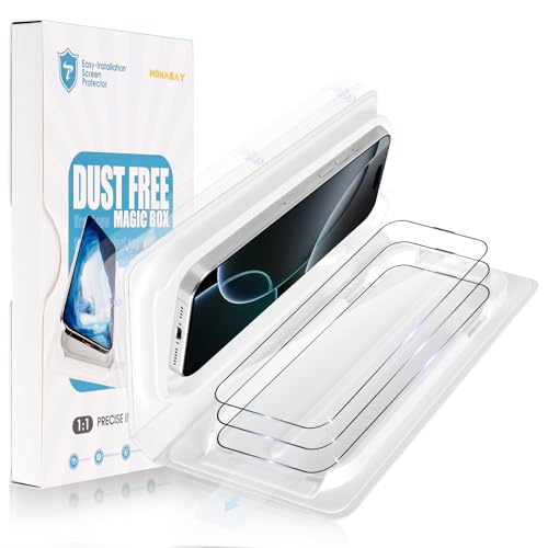 MONASAY 3+1 Pack for iPhone 16 Pro Max Screen Protector [Instant Installation], 3 Pack HD Tempered Glass Film+1 Dust Free Installation Tool No Bubbles No Dust [Military-Grade Protection]