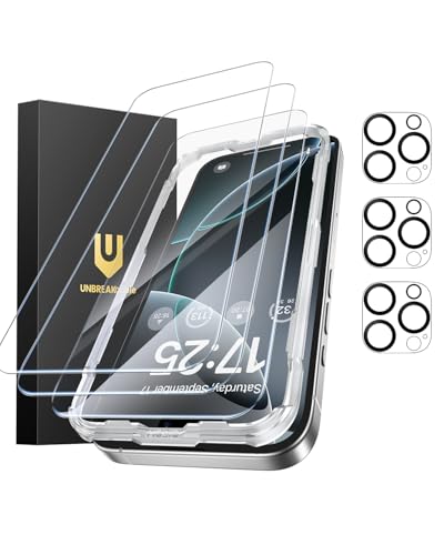 UNBREAKcable 3-Pack for iPhone 16 Pro Max Screen Protector, 3 Tempered Glass + 3 Camera Lens Protectors, 9H Hardness, HD Clarity, Anti-Fingerprint, Case Friendly, 6.9 Inch