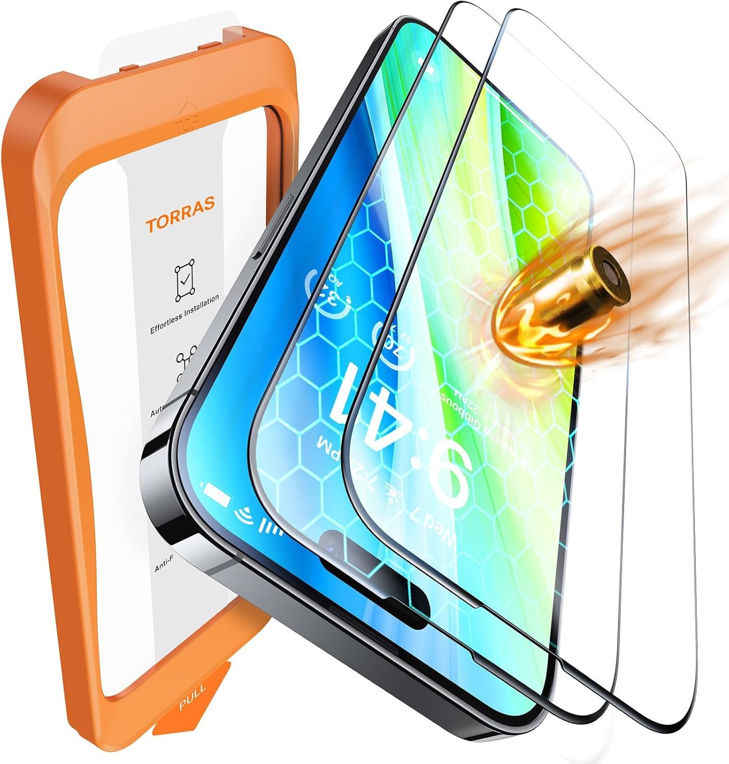 TORRAS for iPhone 16 Pro Max Screen Protector 12FT Military Shatterproof, 9H Anti-Scratch, Full Screen Tempered Glass, No Bubbles No Dust, Longest Durable Screen Protector for iPhone 16 Pro Max 2 Pack