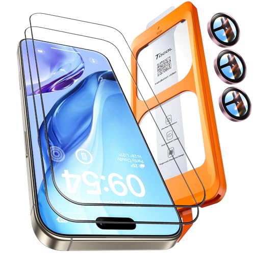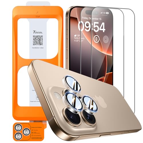 TOCOL 2+1 Pack for iPhone 16 Pro Max Screen Protector 6.9-Inch + Camera Lens Protector, Instant Installation, HD Clear Tempered Glass, Full Coverage Protection, Anti-Shatter, Case Friendly (Clear)