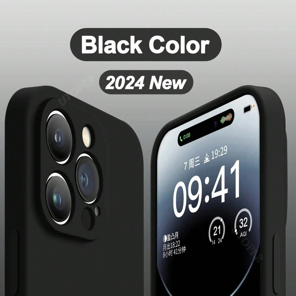 (Black, For iphone 16 ProMax) Liquid Soft Silicone Phone Case For iPhone 16 15 14 11 12 13 Pro Max Plus Protection Shockproof Bumper Back Cover funda