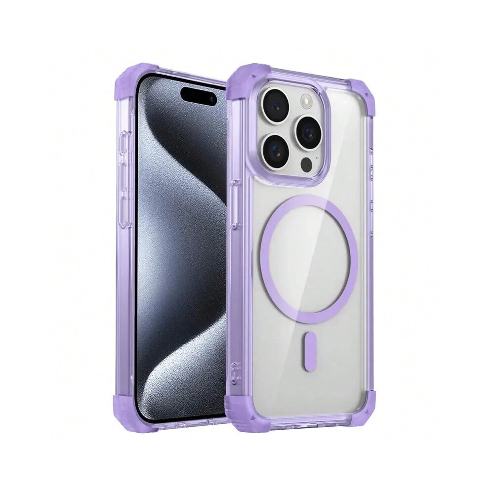 (Purple, For iphone 16ProMax) Armor Shockproof Magnetic Transparent Case For iPhone 16 14 13 12 11 15 Pro Max Plus For Magsafe Wireless Charging Clear