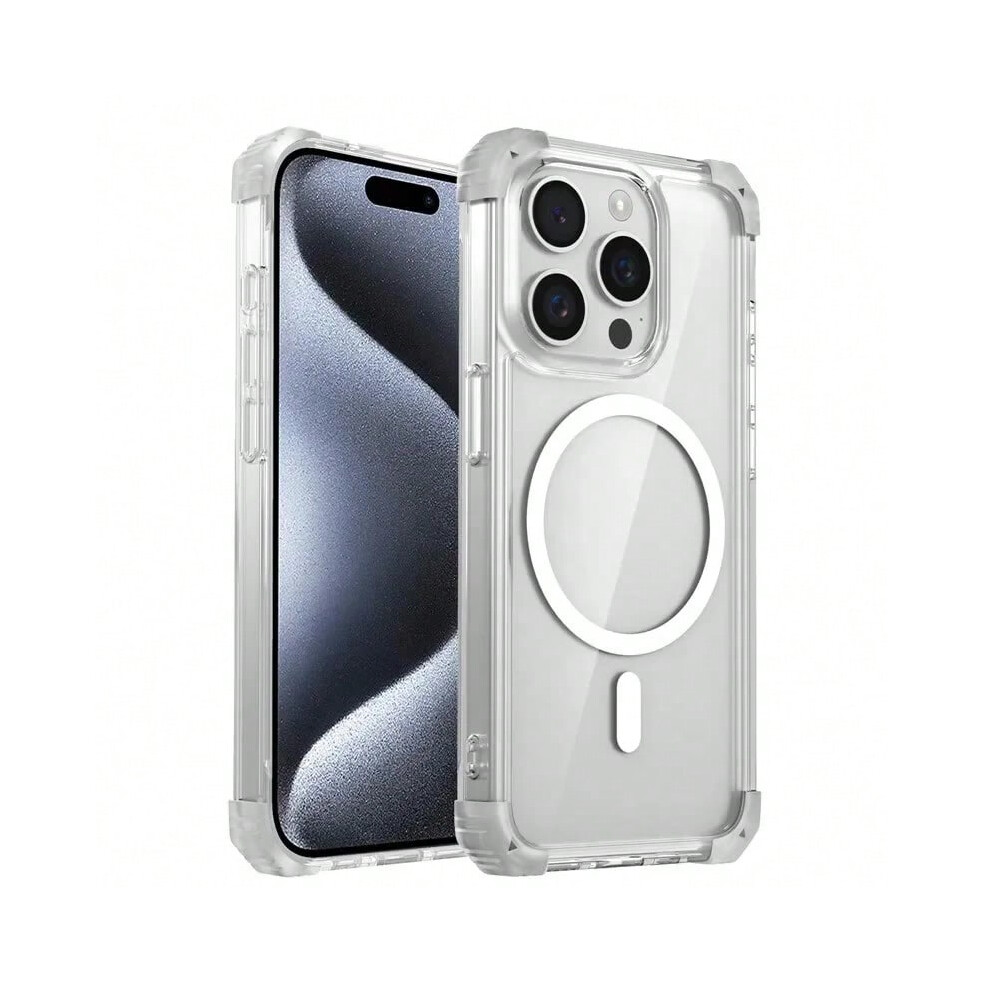 (Clear, For iphone 16ProMax) Armor Shockproof Magnetic Transparent Case For iPhone 16 14 13 12 11 15 Pro Max Plus For Magsafe Wireless Charging Clear