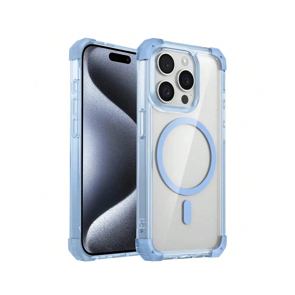 (Blue, For iphone 16ProMax) Armor Shockproof Magnetic Transparent Case For iPhone 16 14 13 12 11 15 Pro Max Plus For Magsafe Wireless Charging Clear C