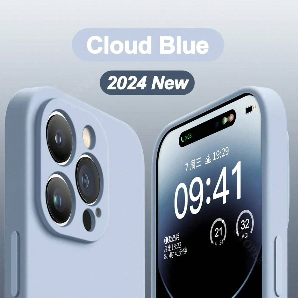 (Cloud Cyan, For iphone 16 ProMax) Liquid Soft Silicone Phone Case For iPhone 16 15 14 11 12 13 Pro Max Plus Protection Shockproof Bumper Back Cover f