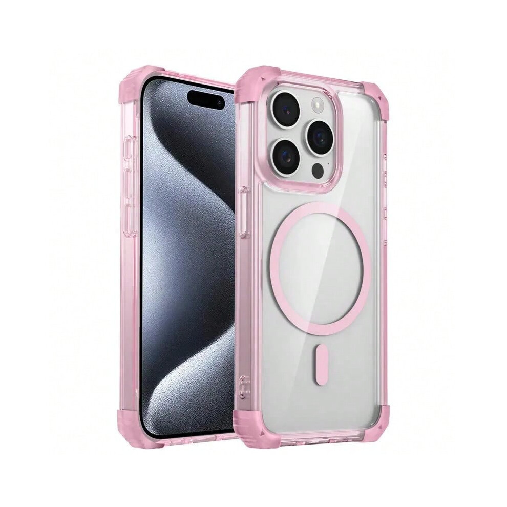 (Pink, For iphone 16ProMax) Armor Shockproof Magnetic Transparent Case For iPhone 16 14 13 12 11 15 Pro Max Plus For Magsafe Wireless Charging Clear C