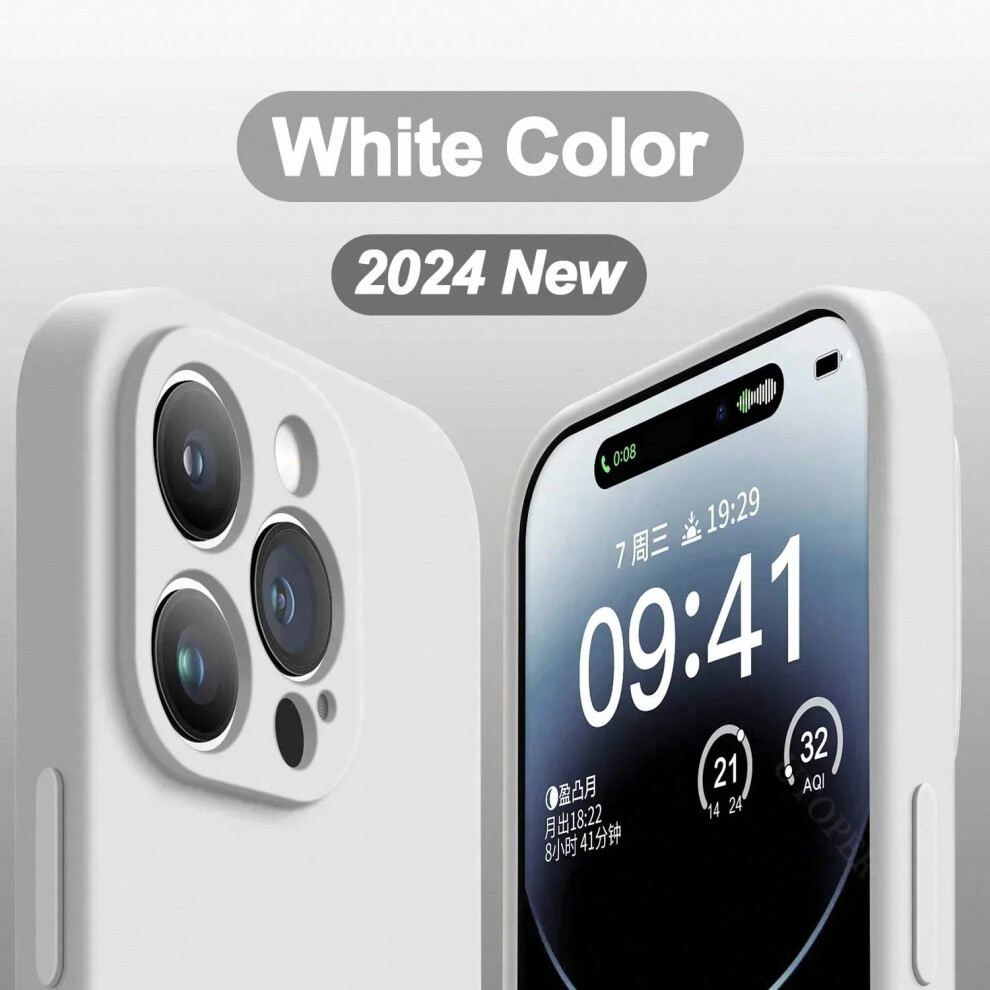 (White, For iphone 16 ProMax) Liquid Soft Silicone Phone Case For iPhone 16 15 14 11 12 13 Pro Max Plus Protection Shockproof Bumper Back Cover funda
