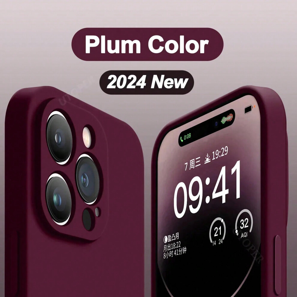(Plum, For iphone 16 ProMax) Liquid Soft Silicone Phone Case For iPhone 16 15 14 11 12 13 Pro Max Plus Protection Shockproof Bumper Back Cover funda