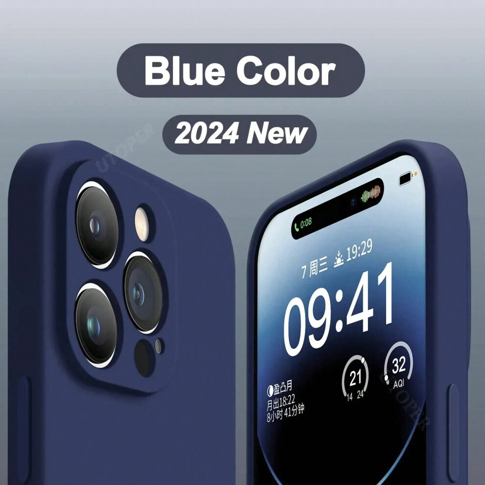 (Blue, For iphone 16 ProMax) Liquid Soft Silicone Phone Case For iPhone 16 15 14 11 12 13 Pro Max Plus Protection Shockproof Bumper Back Cover funda