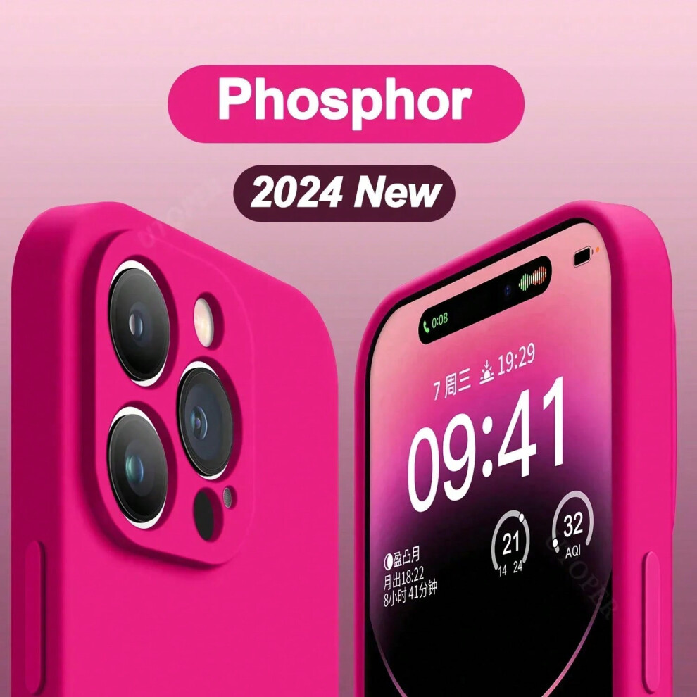 (Phosphor, For iphone 16 ProMax) Liquid Soft Silicone Phone Case For iPhone 16 15 14 11 12 13 Pro Max Plus Protection Shockproof Bumper Back Cover fun