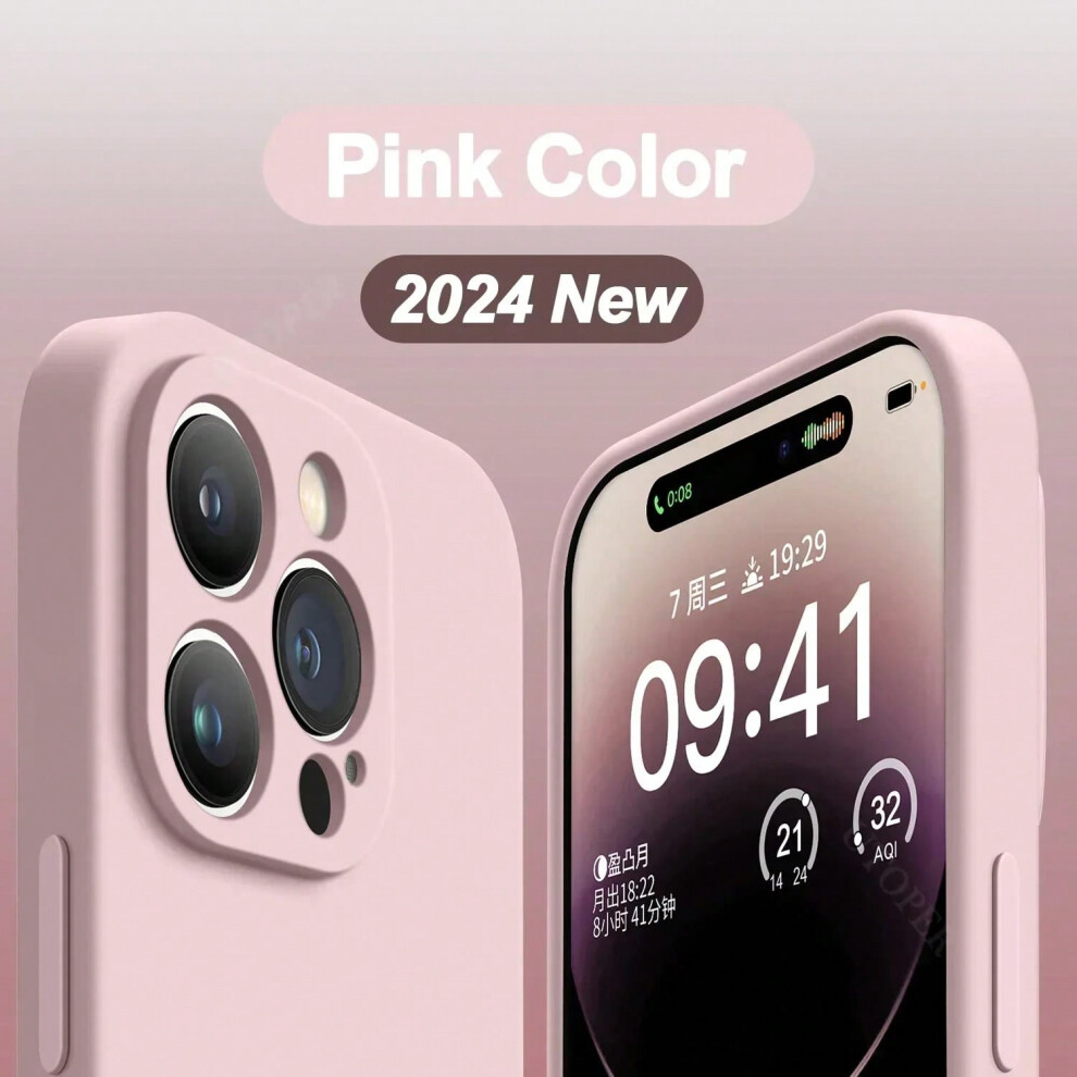(Pink, For iphone 16 ProMax) Liquid Soft Silicone Phone Case For iPhone 16 15 14 11 12 13 Pro Max Plus Protection Shockproof Bumper Back Cover funda