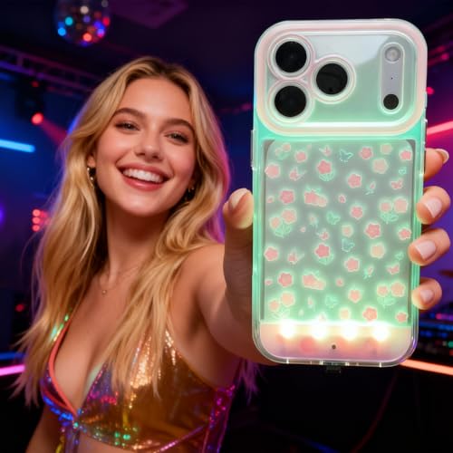 YIWOYI LED Light Up Case for - Sound Activated Glowing Bow Design Cover for 11 12 13 14 15 16 17 Pro Max Cute & Protective Phone(Pink,IPhone 16 Pro)
