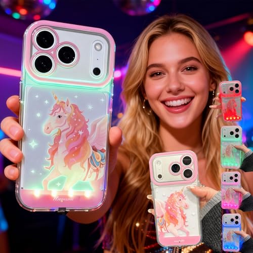YIWOYI LED Light Up Case for - Sound Activated Glowing Bow Design Cover for 11 12 13 14 15 16 17 Pro Max Cute & Protective Phone(Unicorn,IPhone 16 Pro)