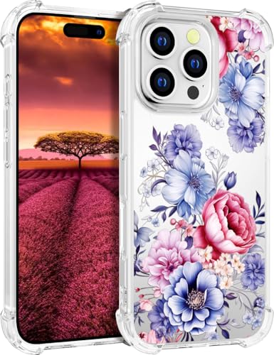 Topgraph Compatible with Iphone 16 Pro Max Case Designer Cute Clear For Women,Transparent 16 Promax Phone Cover Case Design (Blue Red Flower Floral Paint Art Peonies)