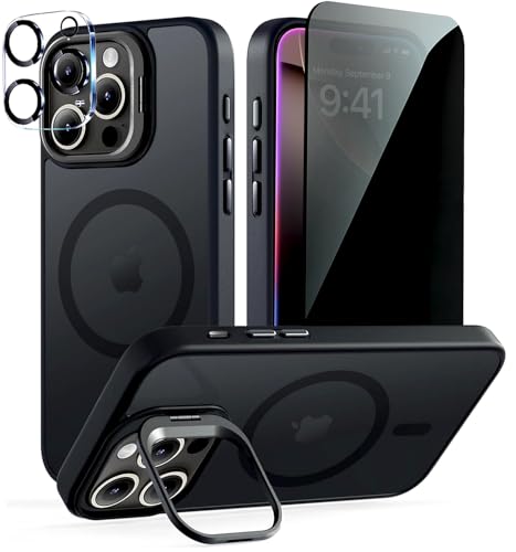 TXXO Magnetic Privacy case for iPhone 16 Pro Max Case with Stand & Camera Lens Protector for iphone 16 ProMax Phone Case Fits MagSafe Translucent Matte Slim Military Shockproof Bumper 6.9" - Black