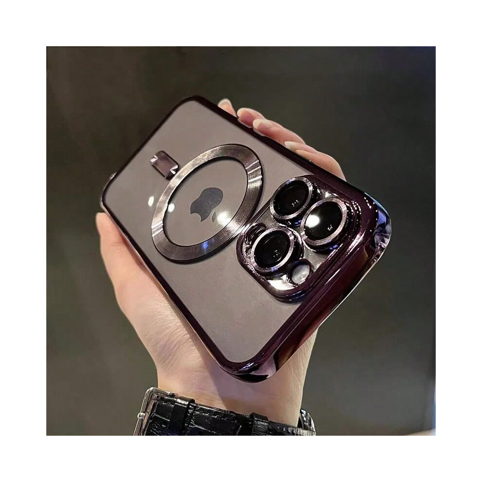 (PURPLE, For iPhone 16ProMax) Luxury Magnetic Plating Clear Case For Magsafe Wireless Charging iPhone 11 12 13 14 15 16 Pro Max Plus Shockproof Silico