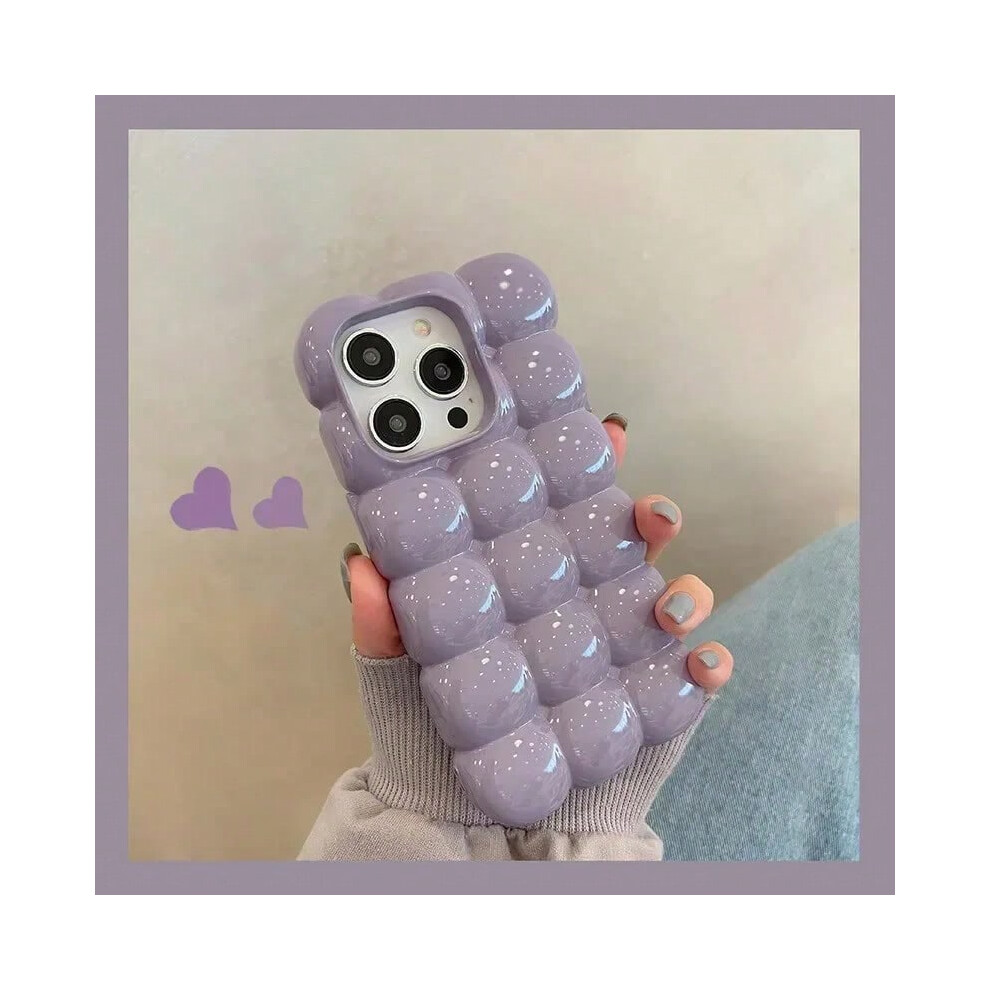 (Purple, iPhone 16ProMax) Cute Cartoon 3D Block Lattice Case for iPhone 15 14 13 16 Pro Max 12 11 Glossy Candy Solid Color Soft Silicone Shockproof Co