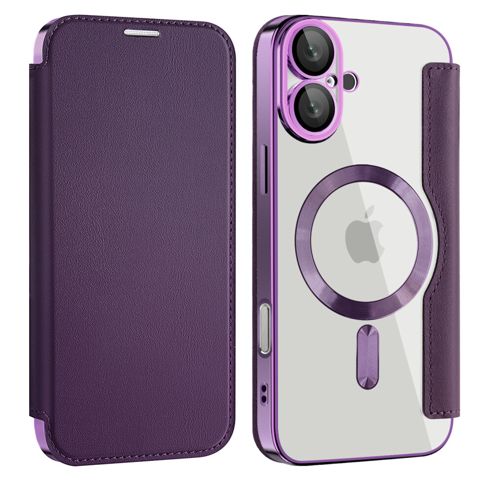 (dark purple, iPhone 16PROMAX) Suitable for Apple 16plus flip leather case mobile phone case iPhone15 magnetic drop-proof 13 protective cover