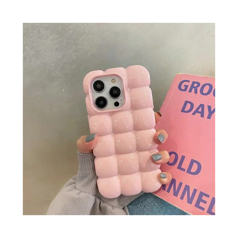 (Pink, iPhone 16ProMax) Cute Cartoon 3D Block Lattice Case for iPhone 15 14 13 16 Pro Max 12 11 Glossy Candy Solid Color Soft Silicone Shockproof Cove