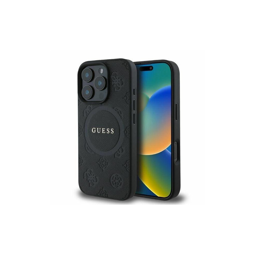 Guess Saffiano Peony Stamp Case with MagSafe for iPhone 16ProMax Black
