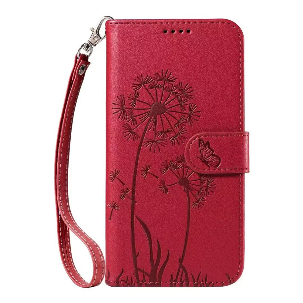 (red, iPhone 16PROMAX) Suitable for iPhone16Pro embossed dandelion mobile phone leather case Apple 14 flip cover bracket card protection case SE4