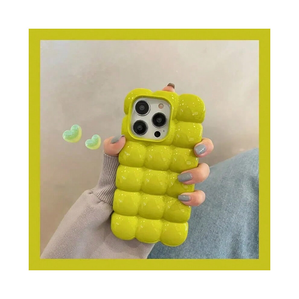 (Yellow, iPhone 16ProMax) Cute Cartoon 3D Block Lattice Case for iPhone 15 14 13 16 Pro Max 12 11 Glossy Candy Solid Color Soft Silicone Shockproof Co
