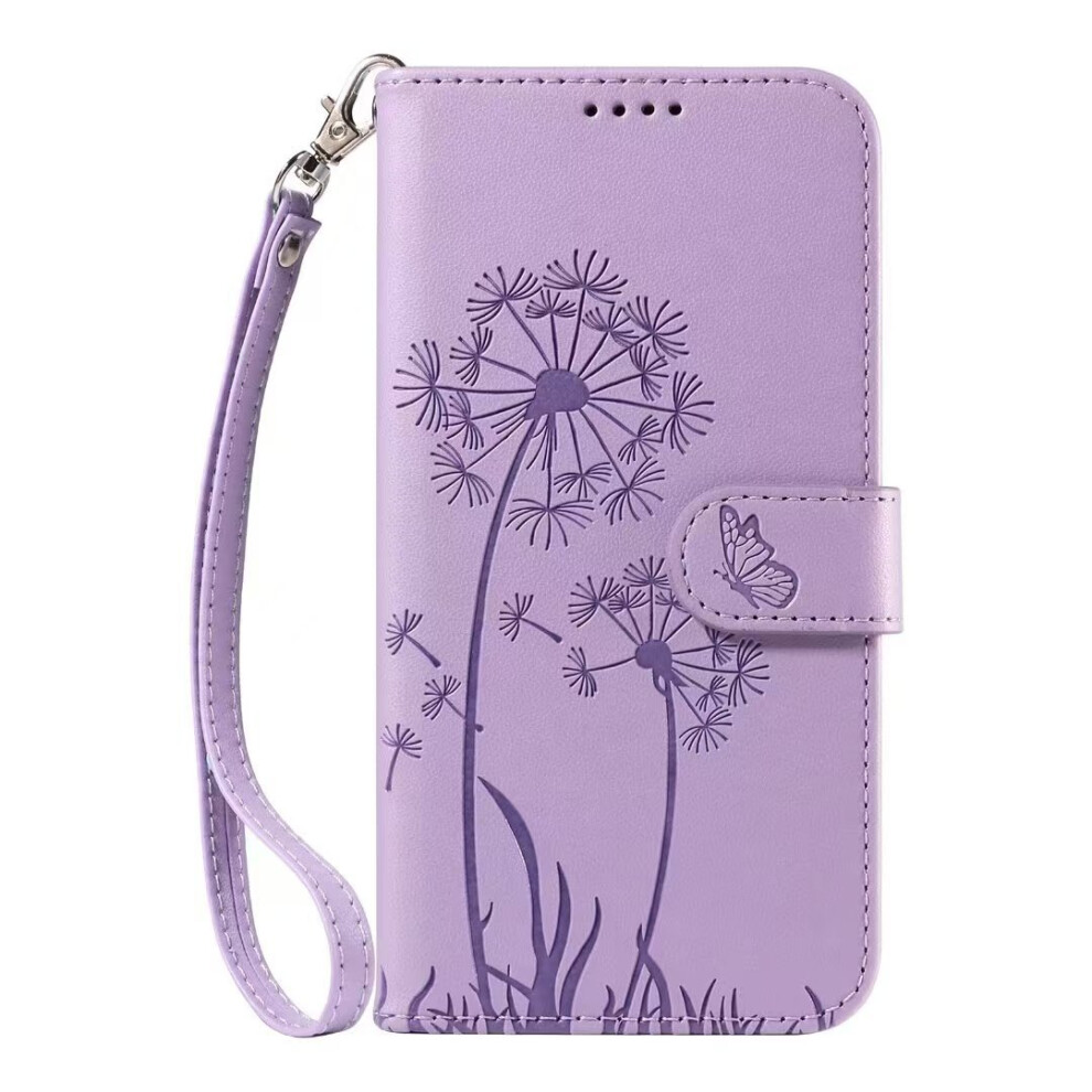 (light purple, iPhone 16PROMAX) Suitable for iPhone16Pro embossed dandelion mobile phone leather case Apple 14 flip cover bracket card protection case