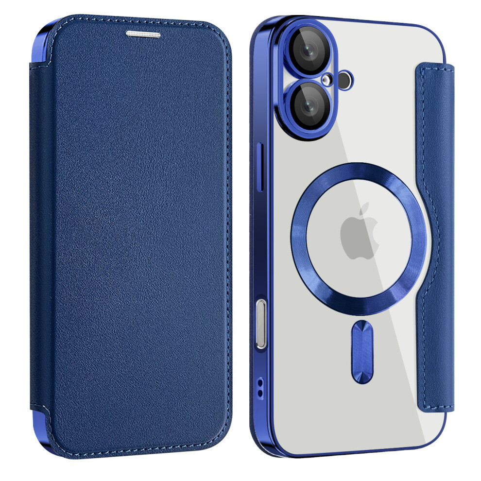 (Far Peak Blue, iPhone 16PROMAX) Suitable for Apple 16plus flip leather case mobile phone case iPhone15 magnetic drop-proof 13 protective cover