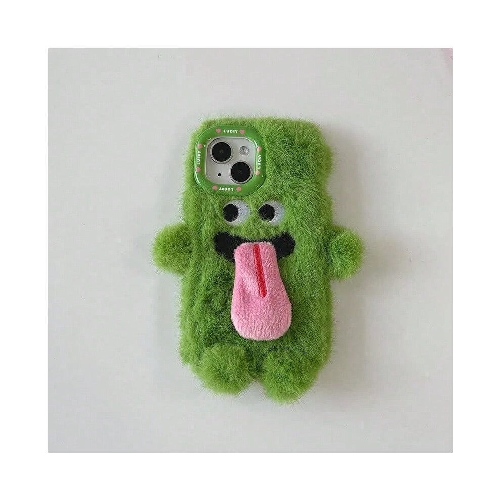 (Green, For iPhone 16promax) INS Couple Fur Monster Kiss Tongue Case For iPhone 16 15 14 13 12 11 Pro Max Korea Cute Cartoon Gift Anti-Drop Soft Back
