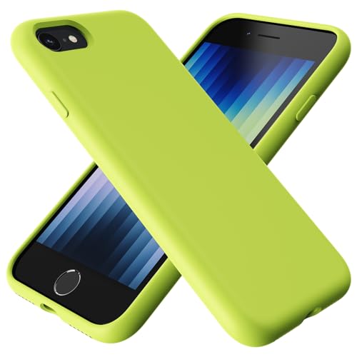 TAXXOE Liquid Silicone Case Compatible with iPhone SE 2020/2022, iPhone 8/7, 4.7 Inch, Soft-Touch, Shockproof, DustProof, Antiskid Full Body Phone Cover for iPhone SE - Fluorescent Yellow