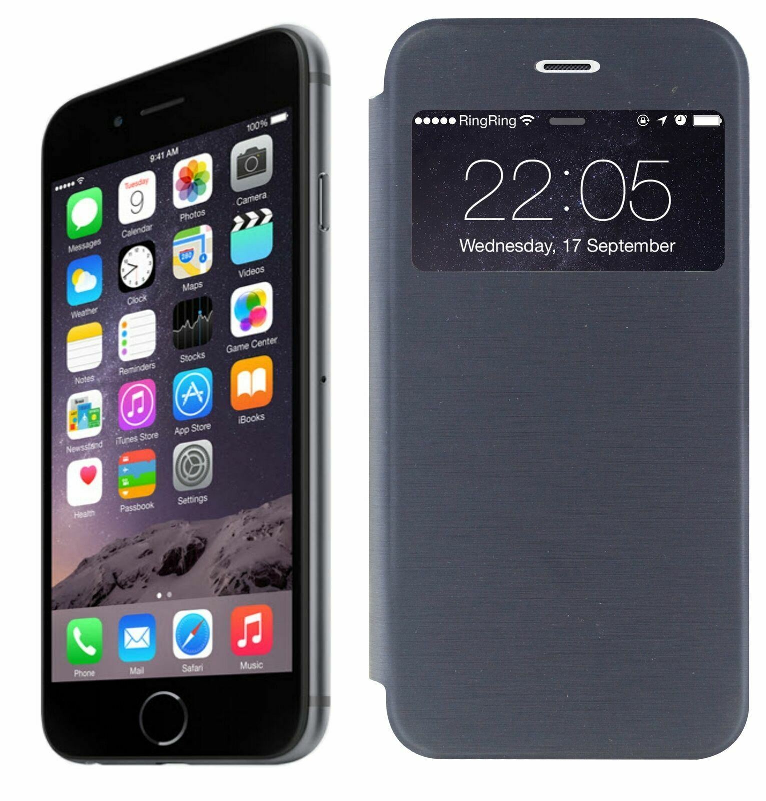 Croco® iPhone 6 4.7" Ultra Slim Semi Transparent Gel hold flip case - Grey