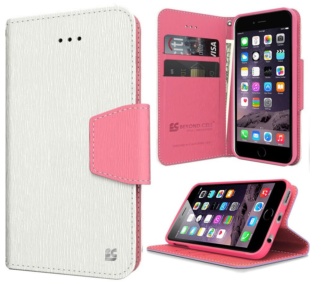 WHITE PINK INFOLIO WALLET CREDIT CARD ID CASH CASE STAND FOR APPLE iPHONE 6 4.7"