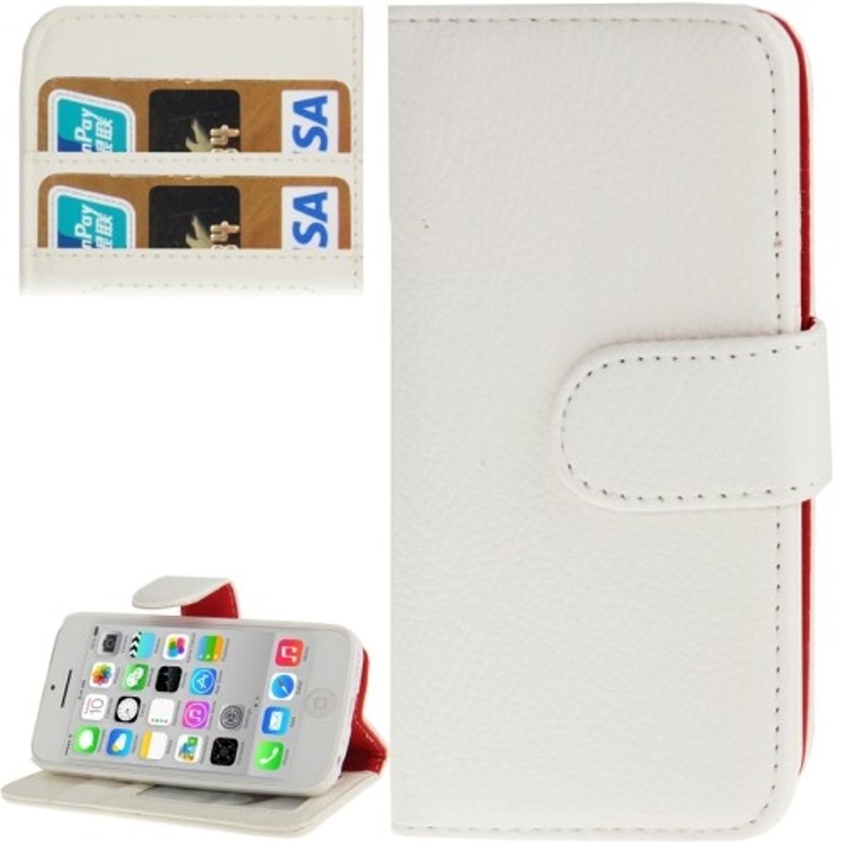 (IP 5C, White) Genuine Real Leather Wallet Case for iPhone 4g/iP13